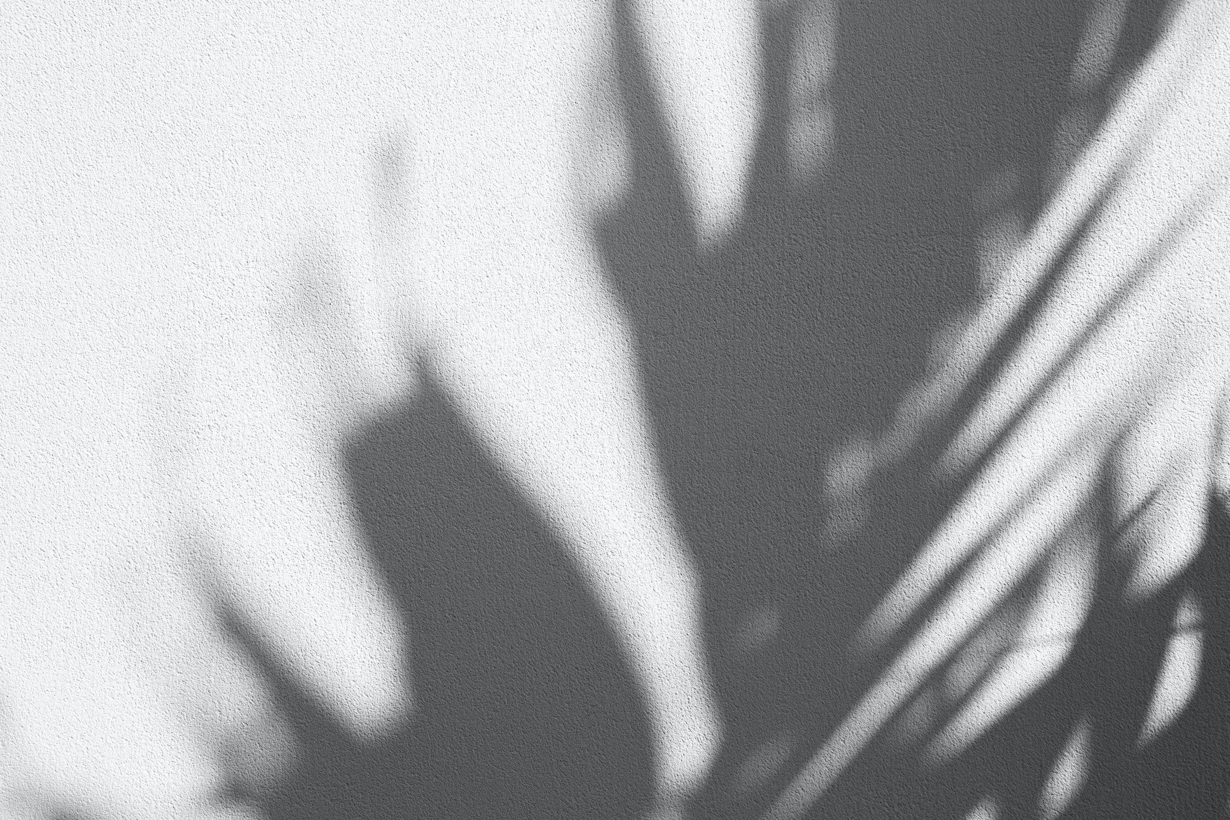 A floral cocktail drink in a martini glass with sliced fruit garnishes, a pair of black sunglasses, and a shadow cast by the glass on a white surface, with a textured beige wall in the background.